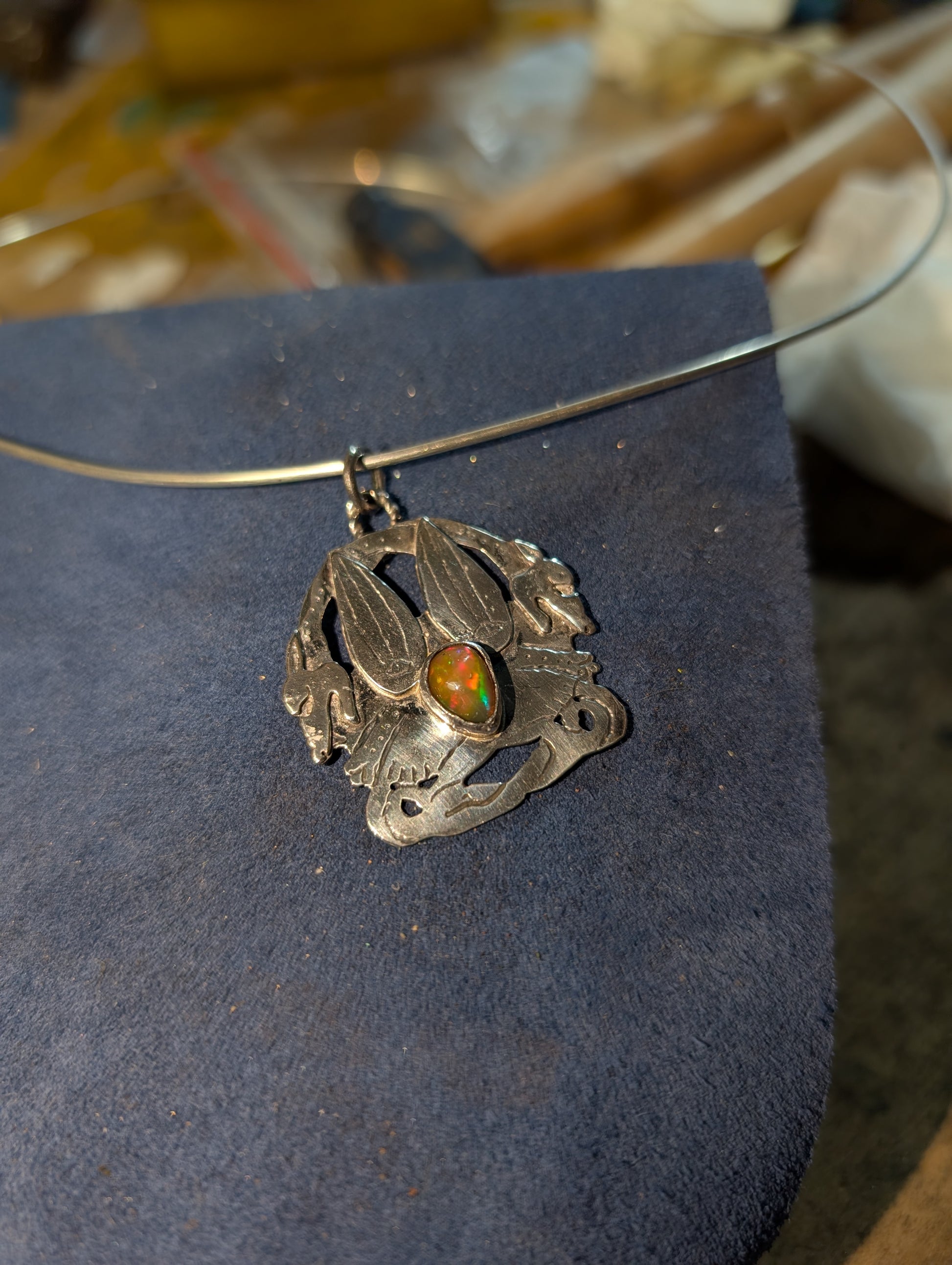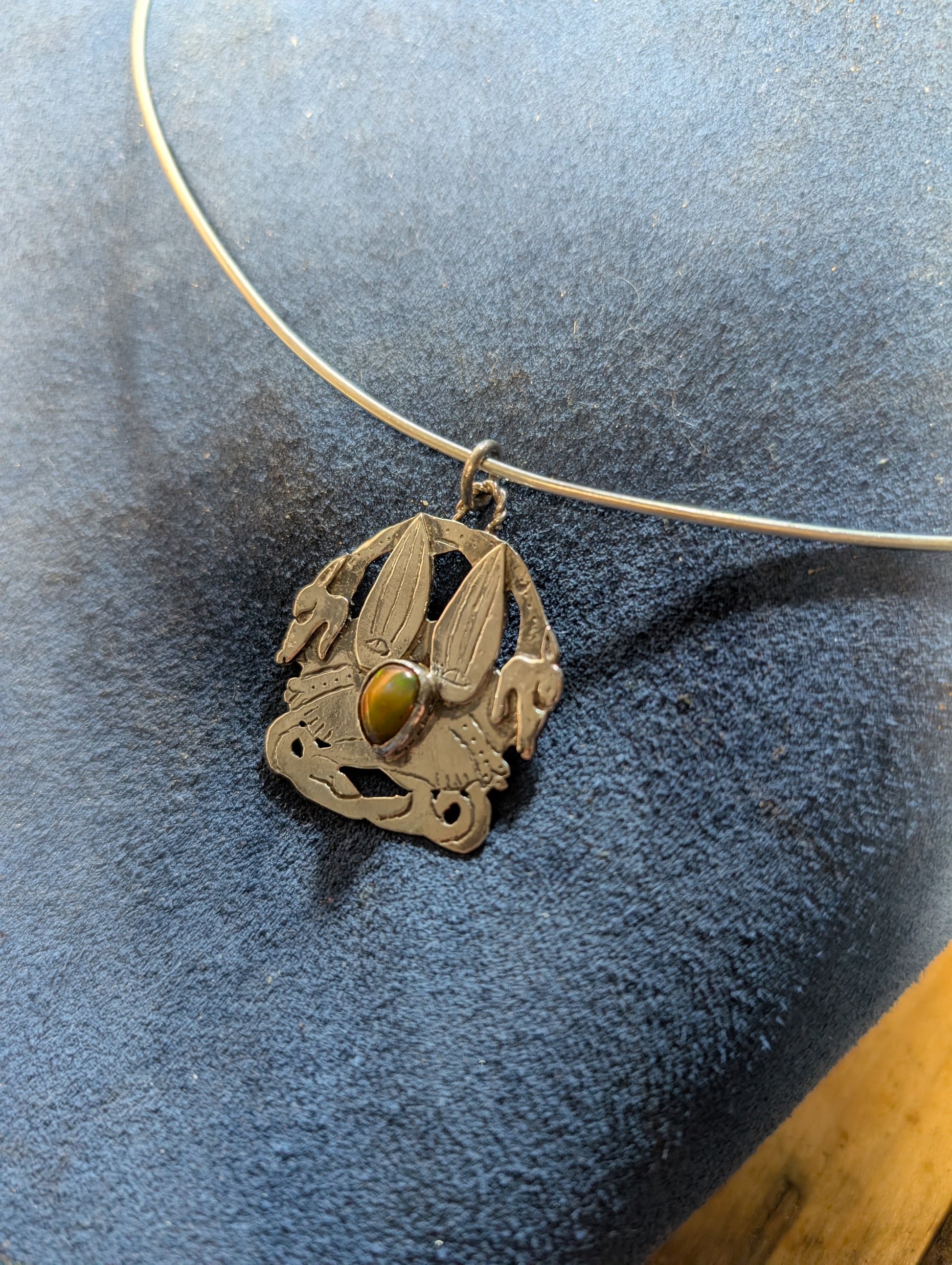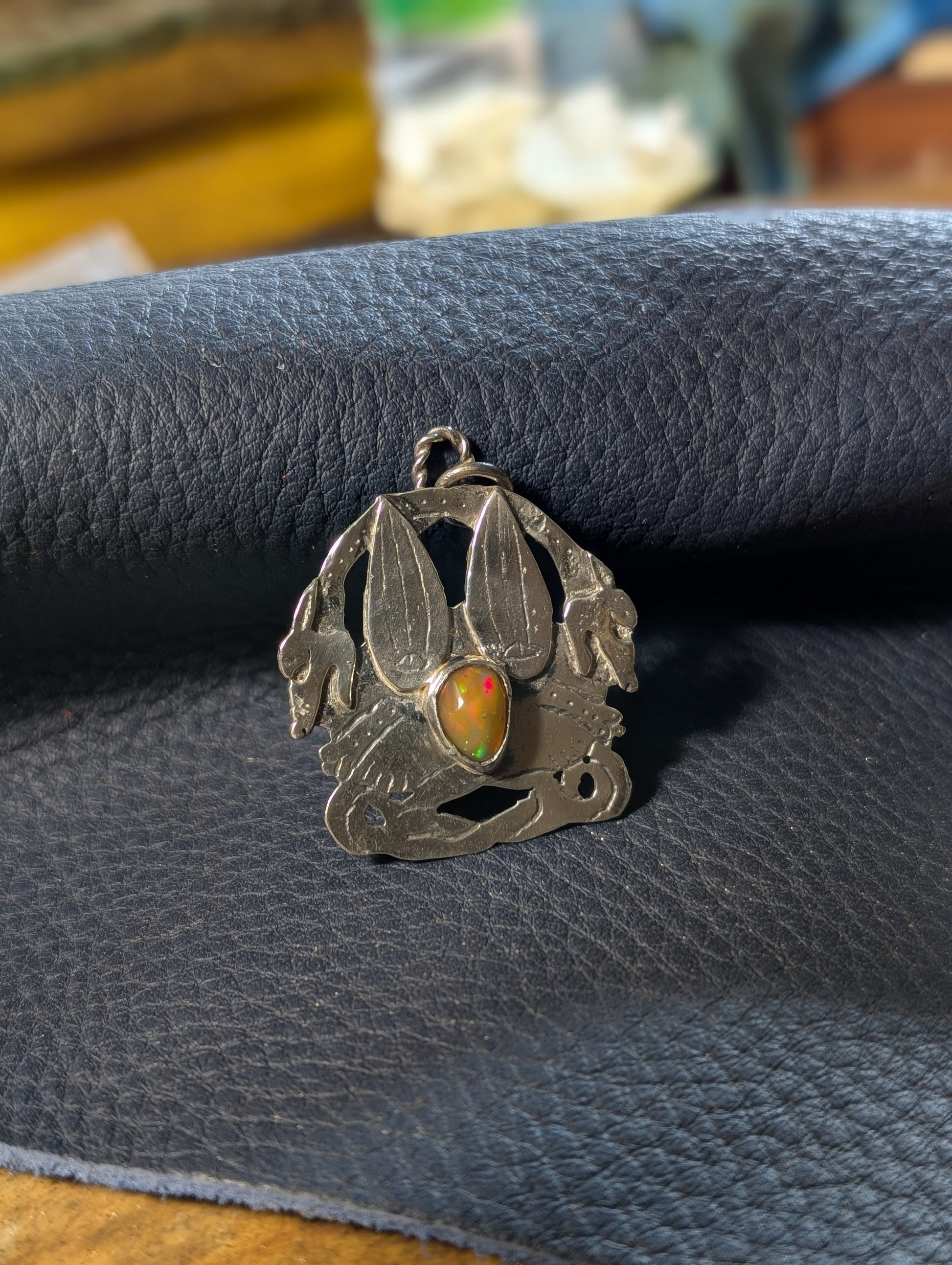 La pietra incastonata e' un opale taglio cabochon.