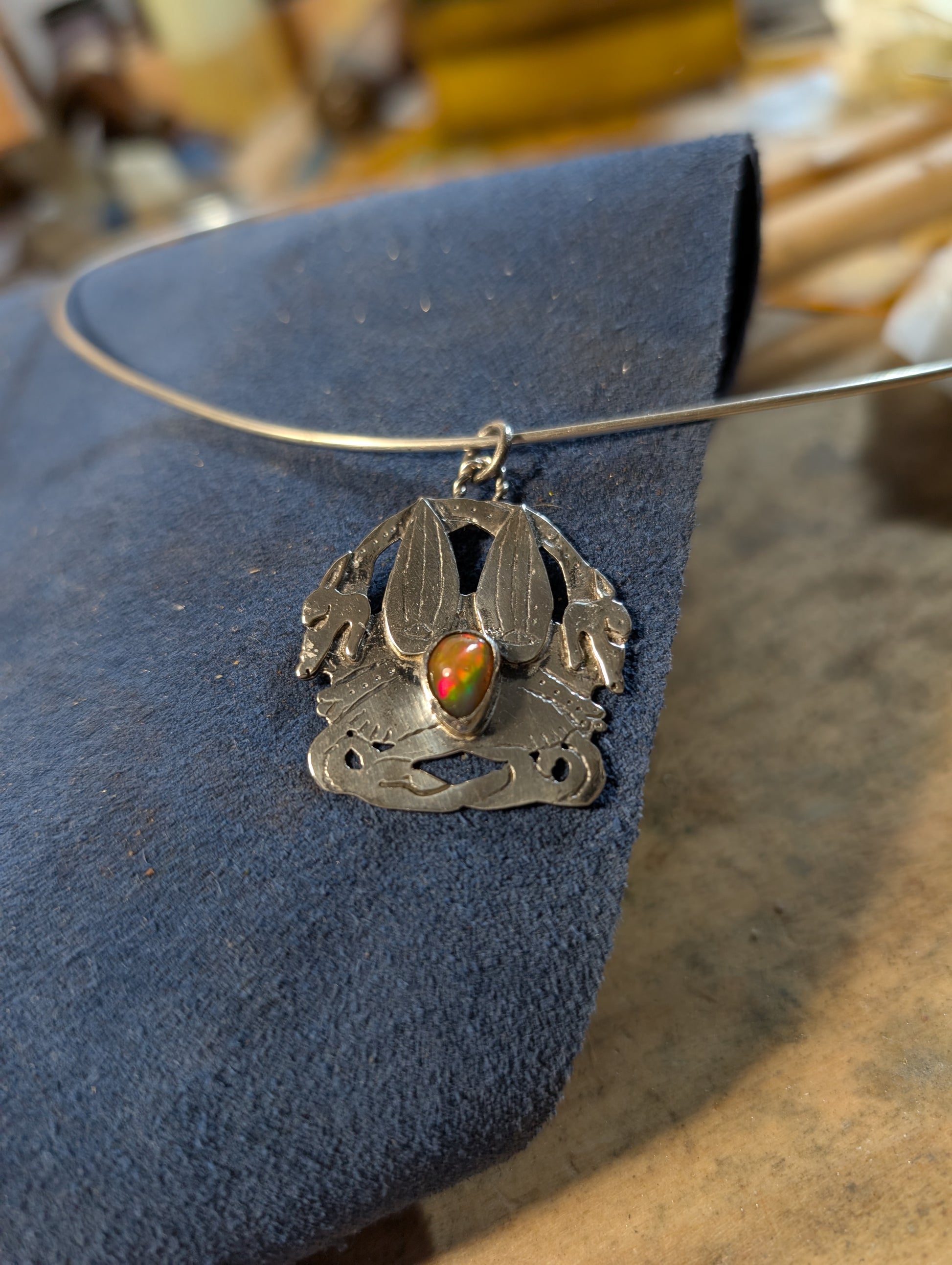 Corredato da girocollo rigido in argento.