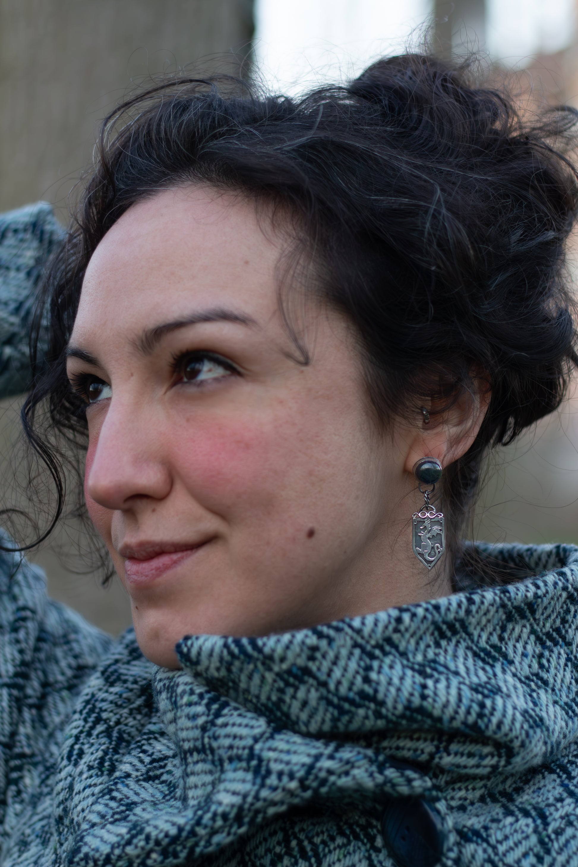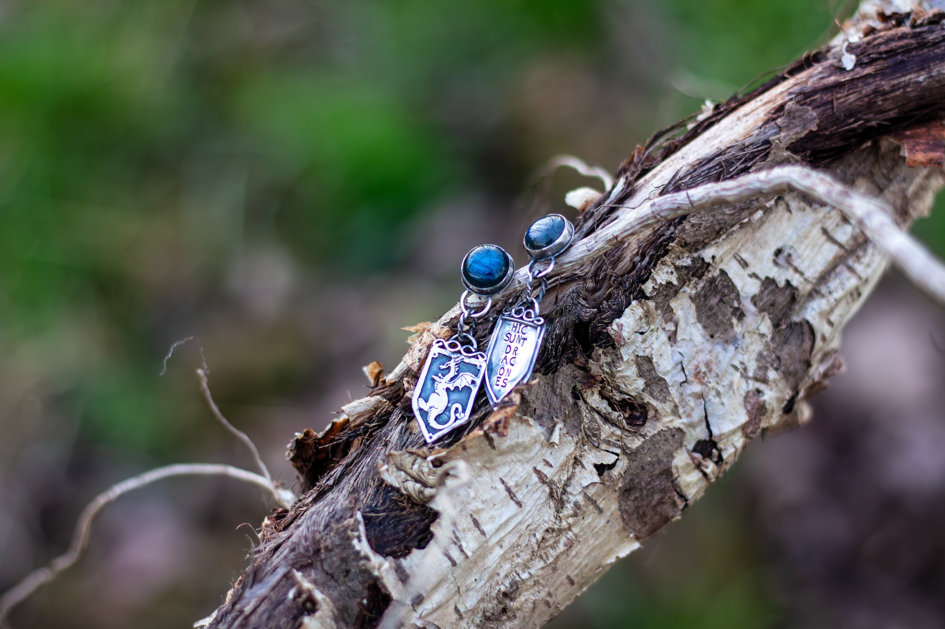 Orecchini in argento 925 e coppia di labradorite cabochon.